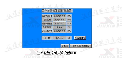 改造系統(tǒng)采用三臺Danfoss變頻器和兩塊MCO305,以及一個臺達HMI。系統(tǒng)采用RS485通訊。主機旋轉(zhuǎn)采用4kW變頻器直接拖動,通過HMI直接設定其運行頻率。送料位置控制參數(shù)如下圖所示。這些參數(shù)在變頻器第19組參數(shù)開放出來,之所以采用HMI,主要是為了方便用戶進行操作。