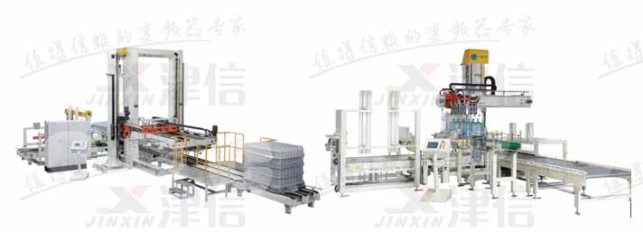 本項目設(shè)備名稱為碼垛機和卸垛機,碼垛機是將已裝入容器的紙箱,按一定排列碼放在托盤、棧板(木質(zhì)、塑膠)上,進行自動堆碼,可堆碼多層,然后推出,卸垛機的工作原理基本和碼垛機一樣,只不過工序不一樣;丹佛斯變頻器在本項目中主要負責(zé)所有電機的控制,包括輸送線控制、定位控制等。